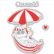 Pegatina Gatito lindo en Hamaca roja y blanca y texto