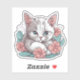 Presentamos a nuestro adorable pegatina, con un bonito y delicado dibujo de un gato blanco acurrucado en una cama de flores rosas. Perfecto para los amantes de los gatos y del arte, este pegatina añade un toque de sofisticación y encanto a cualquier objeto.
