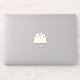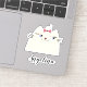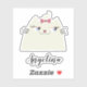 Un gatito blanco kawaii con un arco rosado y un pegatina.