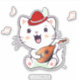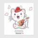 Funny lindo musical de gato blanco gatito con mandolina sobre fondo blanco. Ideal para los amantes del gato.