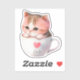 Pegatina Gato blanco-rosado en una taza de té (2)
