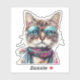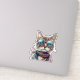 Sticker o calcomanía, de gato con lentes y estilo moderno, ideal para amantes de los gatos y el arte colorido. Perfecto para decorar laptops, agendas, botellas, cuadernos o regalos originales.