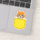 Un ilustracion de un lindo gatito de jengibre mirando en el bolsillo amarillo. Este adorable diseño de gatos es una idea de regalo para la madre de piel, el padre de piel, los amantes de mascotas y los amantes de los animales.