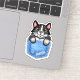 Este divertido pegatina de novedad incluye una apariencia falsa (impresa) de denim / jean azul e incluye un personalizado de gato gatito de esmoquin negro y blanco que parece como si estuviera dentro de un bolsillo! Utilice la plantilla sencilla para agregar su nombre o el nombre de su gato al diseño (o simplemente elimine el nombre de ejemplo "Tabitha" para pedir sin nombre). ¡Estos pegatinas bonitos hacen el regalo perfecto para cualquier dueño de un gato! También serían divertidos para un animal groomer o veterinario.