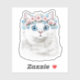 Este diseño presenta un gatito blanco bonito con un halo de flores rosa y azul.