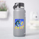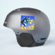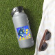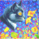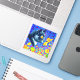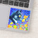 Pegatina con la pintura animal de Louis Wain Cat in Sea of Flowers (1860-1939). Un gato blanco y negro con ojos dorados huele a flores amarillas. En el fondo morado hay flores azules. Un regalo maravilloso para los amantes de los gatos y el arte inglés.