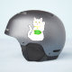 Este impresionante pegatina presenta una imagen de diseño gráfico de un afortunado gato oriental blanco ondulado. El gato tiene hermosos ojos de oro y lleva puesto un medallón de oro en el cuello. El gato tiene orejas y bigotes rosas. Este lindo gatito sostiene una ficha de oro con entrada de jade verde y un mensaje en texto dorado que dice "Buena suerte".