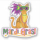 ¡Este lindo gato está listo para celebrar el Mardi Gras! Lleva unas cuentas verdes, moradas y amarillas, así como una colorida máscara de plumas.
