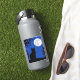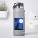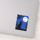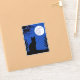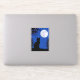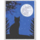 Pegatina en la silueta de un gato, mirando a la luna llena en un cielo estrellado azul profundo
