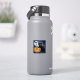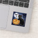 El diseño es un ilustracion estilizado con un gato negro y una linterna de jack-o’ bajo una luna llena con murciélagos en el fondo.