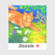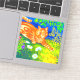 Pegatina con la pintura de animales de Louis Wain Cat Stalking (1860-1939). Un gato a rayas naranja camina por un campo verde por la noche. Flores blancas, violetas y rojas están en primer plano. Un regalo maravilloso para los amantes de los gatos y el arte inglés.