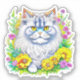Un gato persa blanco lindo rodeado de flores amarillas y rosadas color agua botánica arte ai.