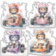 4 ilustraciones acuarelas de gatos montando un kart. 🐱