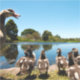Gansos egipcios en el estanque botánico de pato Kirstenbosch, Ciudad del Cabo, Sudáfrica