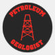 Geólogo petrolero - pegatina negro con letras de estilo colegiado rojo y derrick de petróleo.
