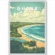 Diseño de viaje vectorial retro en Ghana. Ghana ofrece un rico patrimonio cultural, monumentos históricos y una diversidad de belleza natural, desde las bulliciosas calles de Accra hasta las pasarelas con dosel de Kakum y los fuertes históricos de la Costa del Cabo.