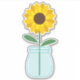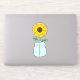 Un pegatina de un girasol parado alegremente en un frasco de albañil.
