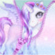 Pegatinas de unicornio blanco de glam morado con morado detrás de cremallera morada