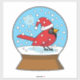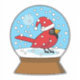 Un ilustracion de un globo de nieve con un tierno cardenal rojo usando una red santa claus bajo la nieve en un cielo azul brillante. Este bonito diseño de globo acuático para navidades personalizados es un regalo para los amantes de las vacaciones invernales y los amantes de las aves y los animales.
