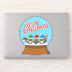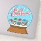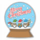 Un ilustracion de un lindo globo de nieve con tres gnomos de búho usando un colorido sombrero de santa en un paisaje nevado con un pino. Uno de los gnomos de búho sostiene un hacha. Este diseño personalizado de Navidades con cúpula de nieve o globo acuático es un regalo para los amantes de las aves, las navidades y los amantes de las vacaciones invernales.