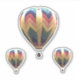 Globos de aire caliente en 3 tamaños diferentes. Colores arcoiris en rayas de chevron.