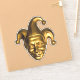 pegatina de vinilo cortado por personalizado con una imagen de una cabeza de bufón de oro. Ver pegatina redondo, confeti, bolso de favor, etiqueta de favor, etiqueta y papel de envoltura. Ver toda la colección de Pegatinas del Mardi Gras en INVITES | Sección Pegatinas y etiquetas.