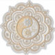 A symmetrical mandala design featuring intricate a yin yang floral pattern in gold and silver.