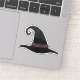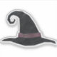 Gorra de brujas negras con una cinta morada y una punta de rizo.