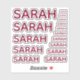 Un nombre simple en gorras de burgundy en 15 tamaños diferentes, recomendado para una mujer. El nombre se puede cambiar con otro nombre corto. El valor predeterminado es Sarah.
