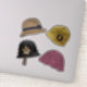 pegatina vinílico cortado por personalizados con una imagen de cuatro gorras de clousch. El icónico gorra de los años 20 era el clóset, que es francés para "campana". No todo el mundo podía sacar este aspecto. Necesitábamos tener una cabeza pequeña y un corto corte de pelo. Estos gorras cercanos fueron llevados bajo en las cejas, lo que dificultó la visibilidad. Las mujeres caminaban con sus mentes hacia arriba y los ojos hacia abajo creaban un aire de concientización o independencia femenina. Ver toda la colección de Pegatinas de los años 20 en INVITES | Sección Pegatinas y etiquetas.