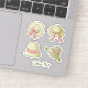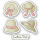 Cuatro mujeres gorras de verano amarillo claro con arcos y cintas rosas.