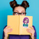 Pegatina "GRACIAS" Agradable Chica de pelo rosado con gafas