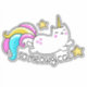 Gracioso lindo ilustrado personalizado meowlógico unicorn gatito arcoíris purpurina pegatina de arte de cola a scrapbook, funda de laptops, proyectos DIY.