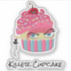 Un gracioso ilustracion gráfico de un quequito asesino mortífero y rosado con una cereza loca en su cabeza. También se puede leer el título "Cupcake asesino". Una extravagante adición a tus decoraciones de fiesta de Halloween.