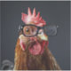 Un diseño humorístico con un pollo estrafalario que lleva gafas de gran tamaño, un encanto y una personalidad exuberantes. Con un fondo sencillo pero lúdico, esta original obra de arte aporta un toque de diversión en un patio de labranza y un estilo alegre a cualquier mesa.