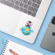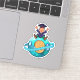 Celebrar la convergencia de la educación y la innovación con nuestro pegatina llamativo que presenta a un graduado sentado sobre un globo de criptografía.