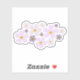 Un pegatina de contorno de flores rosadas y violetas. Este es un gráfico original creado digitalmente por Dogwood y Thistle. Estos pegatinas de contorno tienen un aspecto de corte y sólo tienen un pequeño área de guarnecido que sigue el contorno del diseño.