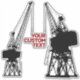 Siluetas de dos grúas de carga de astillero. Iconos vectores con color de personalizable. Texto personalizado.