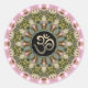 Mandala de diseño geométrico verde y rosa, creado a partir de fractales y fotos de plantas con el símbolo de meditación artístico Om Sanskrit.