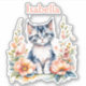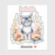 Un lindo gatito sentado en un parche de flores y follaje color agua rosa bonito.