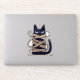 Pegatina Grumpy Chibi Gato negro enredado en yarn