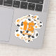 Este equipo colorea el pegatina de fútbol para chicas o niños y presenta la imagen de un grupo de balones de fútbol de tamaño variado naranja, negro y blanco, sobre los que se puede personalizar el nombre del jugador, número de camiseta, nombre del equipo y nombre de la mascota - por katz_d_zynes