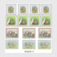 Esta hoja de pegatina de vinilo tiene un grupo de varios pegatinas de Pascua incluyendo pollitos amarillos de huevo incubado con texto de Saludos de Pascua; conejito blanco de Pascua empujando carretilla con huevos de colores con texto de Pascua Joyous; dos conejos manejando auto antiguo con huevo azul con texto de Saludos de Pascua; y un grupo de conejitos corriendo en cestas de césped con cestas con huevos con texto de Pascua pascua base con texto de Pascua personalizar.