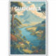 Diseño de viajes vector retro en Guatemala. Desde la belleza colonial de Antigua hasta las costas místicas del lago Atitlán, Guatemala es una verdadera joya centroamericana.