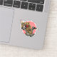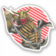 Esta dinámica imagen representa a un feroz guerrero samurai en medio de la batalla. Ataviado con armaduras tradicionales y una máscara amenazadora, el samurai lleva una katana con una precisión mortal. La postura del guerrero es agresiva, y sus ojos están llenos de determinación. La imagen está puesta en el fondo de un círculo rayado rojo y blanco, un símbolo de Japón. La composición general es poderosa y evocadora, capturando el espíritu del guerrero samurai.