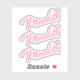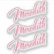 Nombre de mérito en letras de escritura cursiva decorativa rosa bonito. Tres copias.