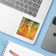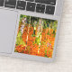 Pegatina con la pintura de Gustav Klimt Casa de campo con abedules (1903). Un paisaje otoñal de hojas naranjas en un bosque de abedules con hermosas flores azules. Un regalo maravilloso para los fans del Art Nouveau y el arte austriaco.