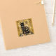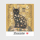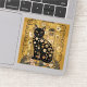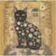 Este diseño es un ilustracion estilizado de un gato negro de la manera artística de Gustav Klimt. El gato está instalado en una zona de descanso, adornado con motivos y motivos decorativos intrincados que recuerdan el estilo característico de Klimt, con formas geométricas, elementos florales y diseños circulares. El fondo cuenta con una superficie dorada y texturada con follaje estilizado y flores, lo que realza aún más la estética de Klimt-esque. La impresión general es de elegancia ornamental y riqueza decorativa, mezclando imágenes de animales con principios de arte decorativo.