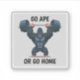 Añada un toque de feroz determinación a sus pertenencias con este pegatina. Con un gorila poderoso y musculoso levantando una barbacoa sobre la cabeza con el eslogan "Vete al Ape o vete a casa". Perfecto para botellas de agua, laptops, laptops y más.