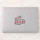 Esta calcomanía temática de Derby tiene un caballo de carreras de acuarela con un jockey de rosa rodeado de una corona de rosas rojas con el dicho "Háblame de DERBY". Hay un fondo a rayas negras y blancas.